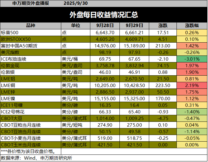 股指:美国三大指数小幅上涨,上一交易日股指再度上涨,非银金融板块领涨,煤炭板块领跌,市场成交额2.18万亿元。资金方面,9月26日融资余额减少193.55亿元至24080.56亿元。整体上而言9月走势相对7月和8月更为波折,我们认为是进入了持续上涨后的高位整固阶段,在行情长时间持续上涨后部分资金在高位对冲需求增加使得多空力量出现一定分歧从而带来股指较大波动,但从中长期角度来说,我们认为中国资本市场的战略配置期才刚开始。科技成长成分居多的中证500和中证1000指数更偏进攻,波动较大,但可能可以带来更高的回报,而红利蓝筹成分居多的上证50和沪深300则更偏防御,波动较小,但是价格弹性可能相对较弱。长假来临,杠杆资金开始减少,注意长假风险。