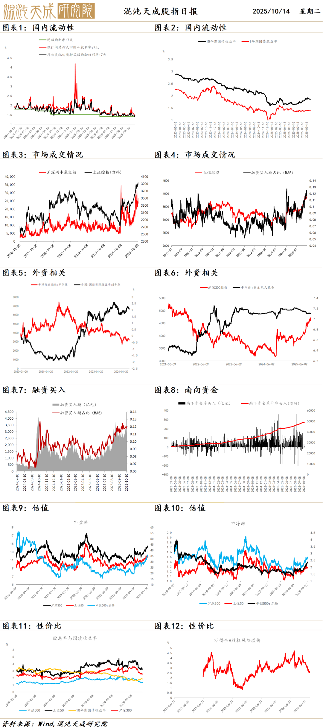 资金面上人民币相对偏强,汇率暂时不构成资金面的约束,A股的资金环境仍然偏宽松。