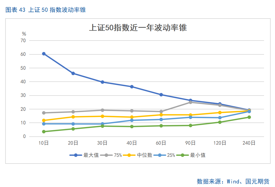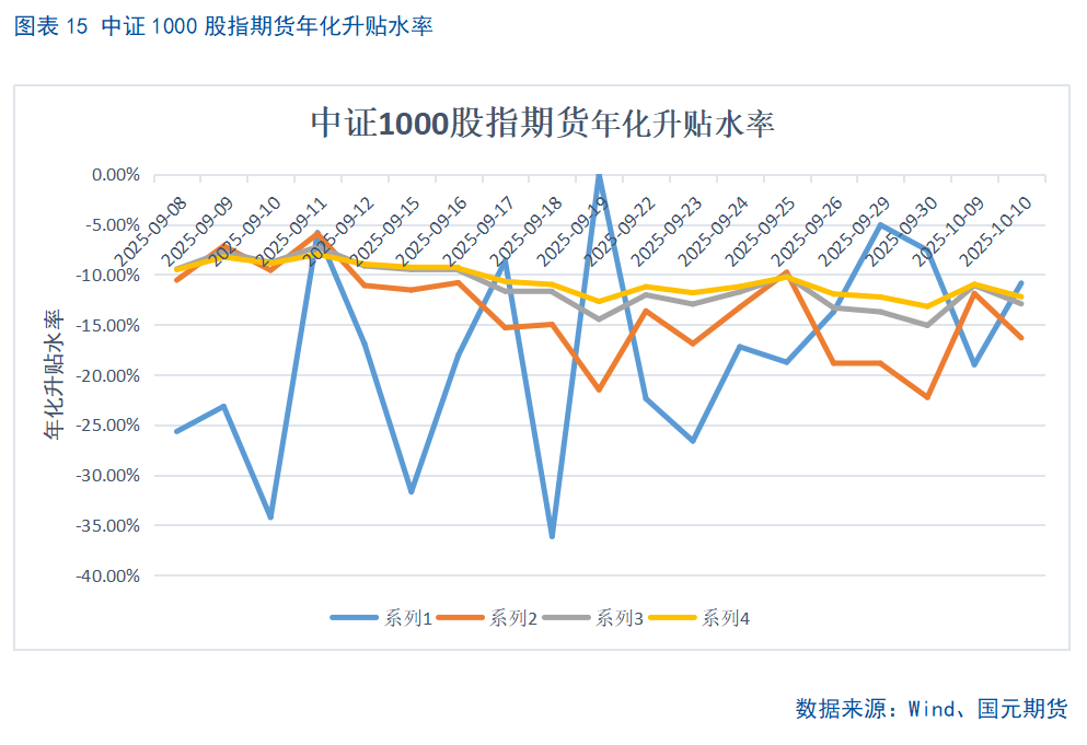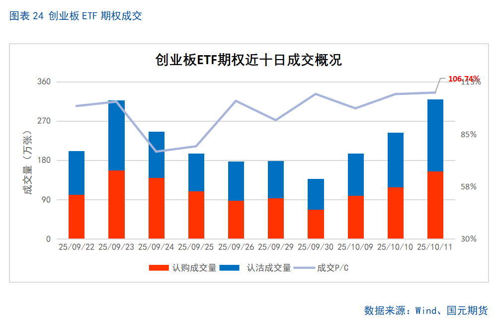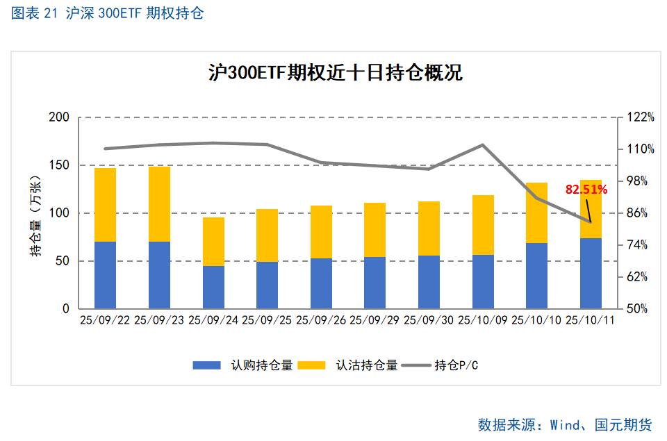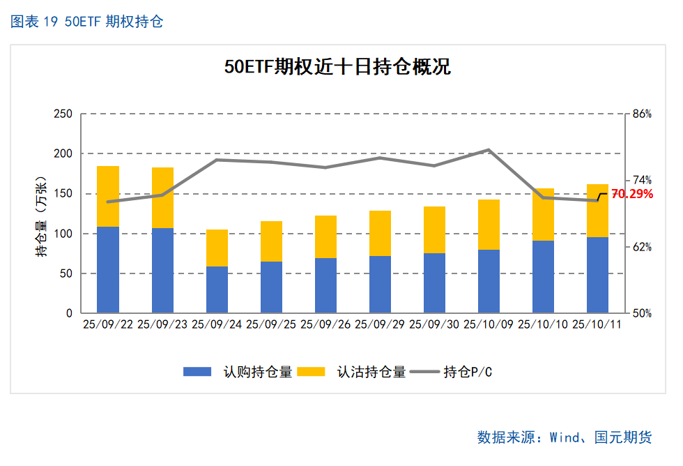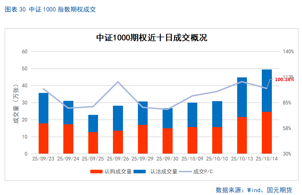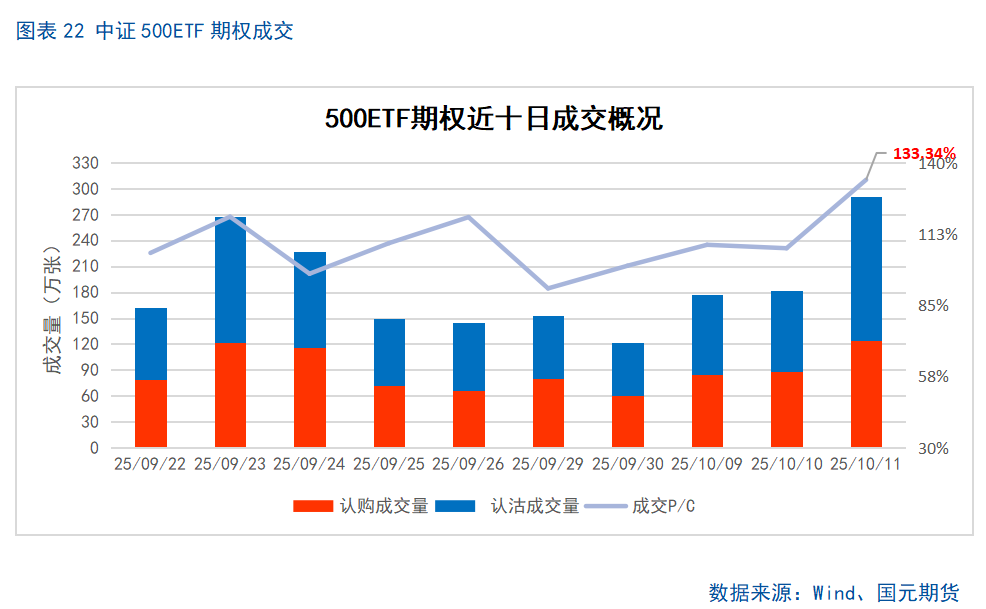 股指震荡整理,期权加权平均隐含波动率整体维持在较高水平。当前各标的期权加权平均隐含波动率在19%-34%附近,整体处在近年较高水平。现货指数近两个月波动较大,市场对于股指大幅波动预期较高。