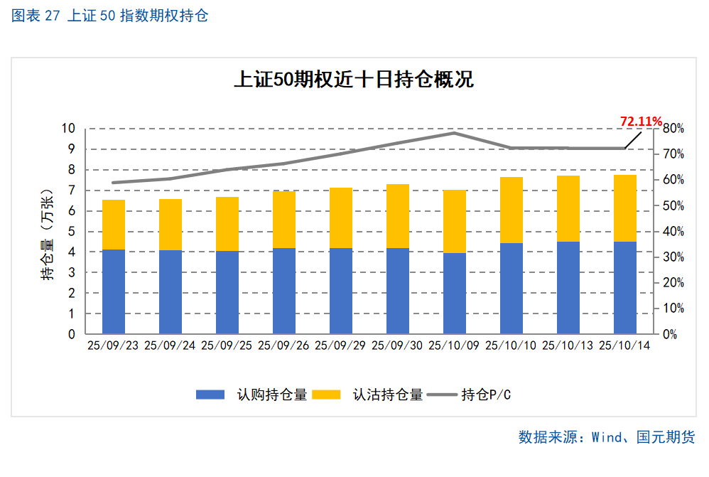期权方面,上周期权成交量有所回升。期权持仓PCR整体处在较高水平,期权卖方当前对于500ETF以及上证50指数等标的强烈不看跌。同时,期权成交PCR有所上升,利用期权杠杆性做多的投资者近期大幅减少。