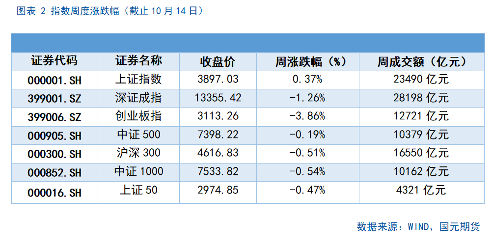上周主要股指走势分化,上证指数小幅上证,深成指与创业板指则是震荡走低。两市日均成交依旧维持在2.5万亿之上的水准,交投活跃度维持在极高水准。股指期货IC、IM远月年化贴水率跌至4-6%的水平,期权成交PCR保持在高位,显示市场对于股指中长期走势仍相对看好。