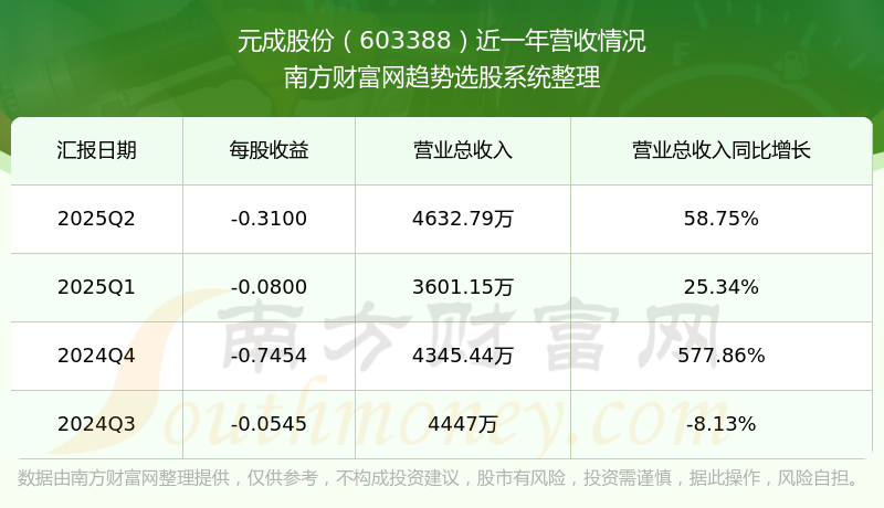 元成股份2025年第二季度财报显示,公司主营收入4632.79万元,同比58.75%;归母净利润-1.01亿元,同比-137.51%;扣非净利润-5234.77万元,同比-236.69%;
