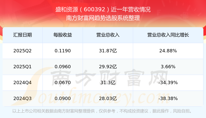 盛和资源2025年第二季度报告显示,公司实现主营业务收入31.87亿元,较去年同期增长24.88%;归属于母公司股东的净利润为2.09亿元,同比增长41.83%;扣除非经常性损益后的净利润为1.98亿元,同比增长32.51%。