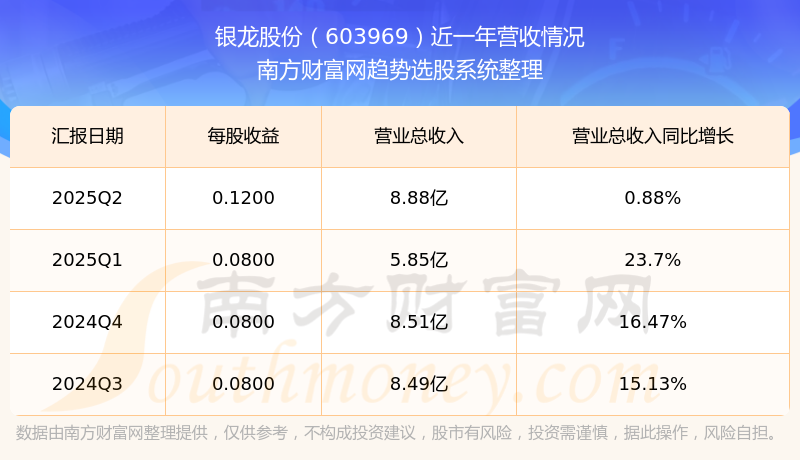 在2025年第二季度,银龙股份的业绩表现,主营业务收入达到8.88亿元,实现了0.88%的同比增长率。同时,公司归母净利润录得1.02亿元,同比增长67.12%。