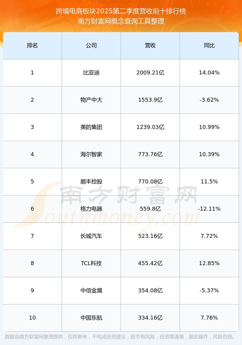 按照概念查询工具统计,该股所属板块为跨境电商板块,该板块共有413只股票,嘉诚国际2025第二季度营收在该板块中排名为第274名,该板块2025第二季度营收排名前十的股票如下表:
