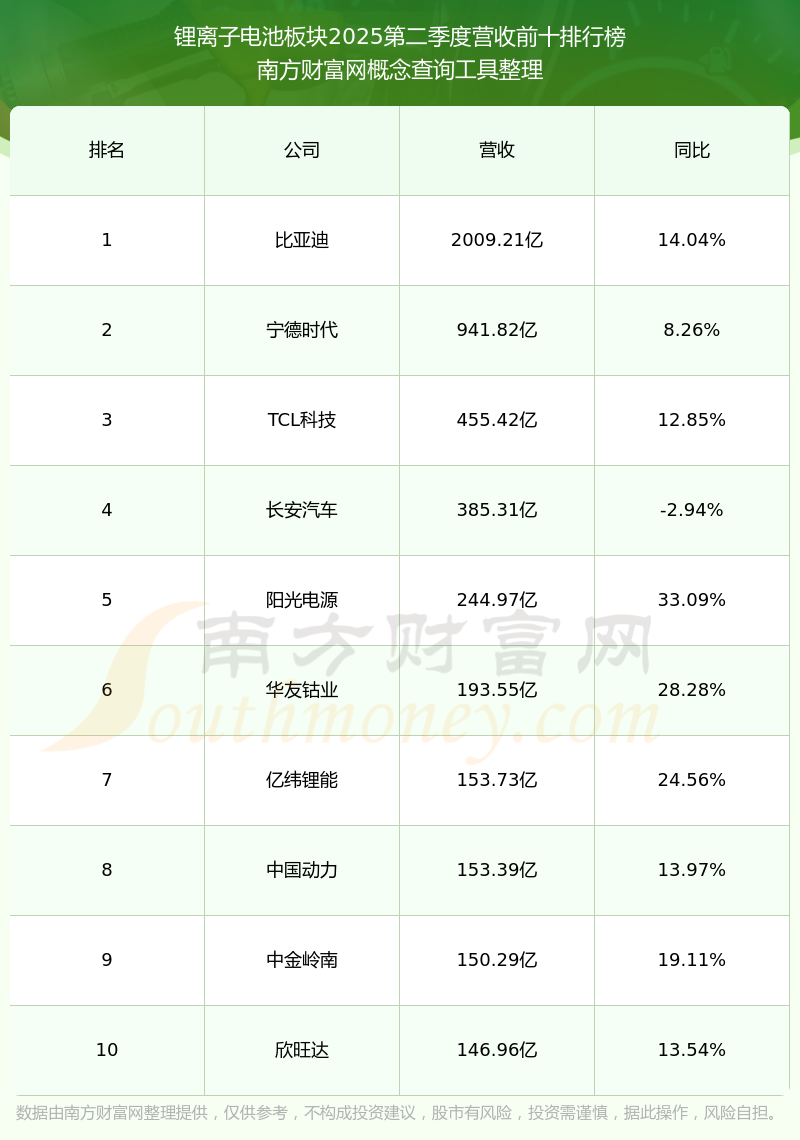 按照概念查询工具统计,该股所属板块为锂离子电池板块,该板块共有138只股票,博力威2025第二季度营收在该板块中排名为第86名,该板块2025第二季度营收排名前十的股票如下表: