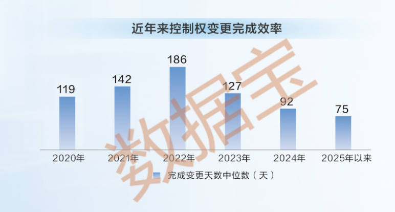 最后是控制权交易的效率相比以往更高。数据显示,今年以来成功实现控制权变更的公司,从筹划到完成的耗时中位数仅为75天,创出最快纪录。其中,焦作万方)