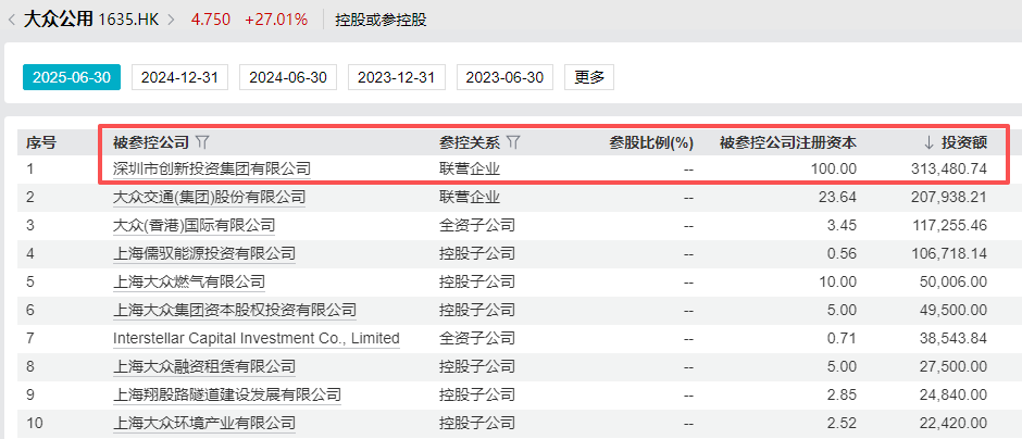 公开资料显示,大众公用为公用事业与金融创投齐头并进的投资控股型企业。其中,创投业务是大众公用较为重要的业务板块和利润来源,持有深创投10.80%股权。