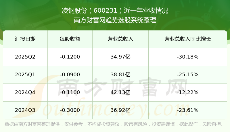 凌钢股份股票近一年营收情况如下表: