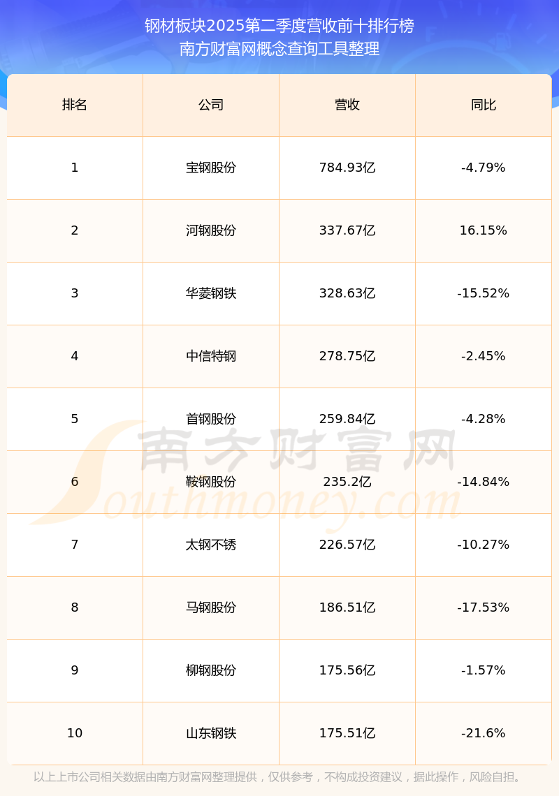 按照概念查询工具统计,该股所属板块为钢材板块,该板块共有30只股票,凌钢股份2025第二季度营收在该板块中排名为第21名,该板块2025第二季度营收排名前十的股票如下表: