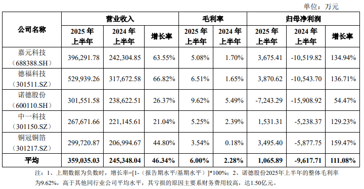 2025年以来,铜箔行业呈现复苏回暖趋势,嘉元科技、德福科技(301511)、中一科技(301150)和铜冠铜箔)