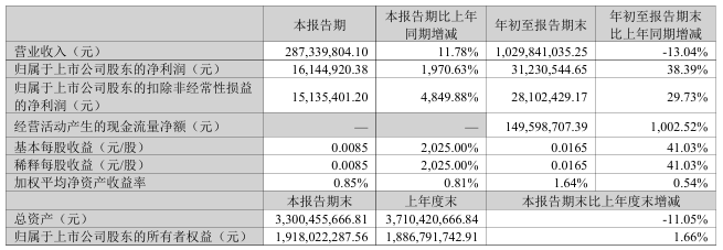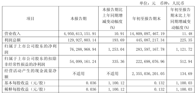 href=/600884/>杉杉股份(600884)(600884)三季报显示,公司第三季度实现营收49.51亿元,同比增长10.91%;归属于上市公司股东的净利润为7628.89万元,同比增长1253.04%。前三季度实现营收148.09亿元,同比增长11.48%;归属于上市公司股东的净利润为2.84亿元,同比增长1121.72%。业绩变动主要系2025年前三季度公司负极材料业务销量实现较大幅度增长,同时通过推进一体化大基地产能释放、生产工艺优化等举措实现成本有效优化,盈利水平同比提升;及本年非核心业务亏损规模整体有所收窄。