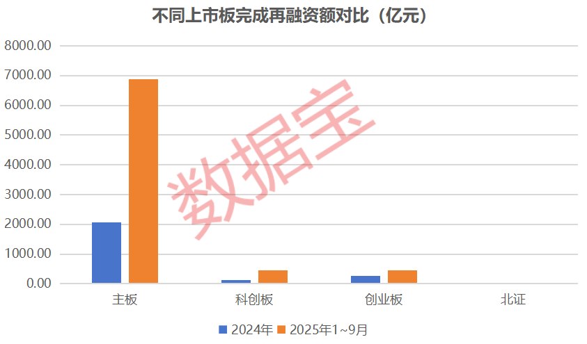 从已实施的再融资来看,今年前三季度,主板再融资总额大幅超越上一年全年,接近6878亿元,主要由中国银行)