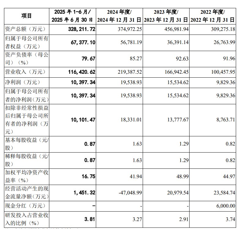财务方面,于2022年度、2023年度、2024年度以及2025年1-6月,泰金新能实现营业收入分别约为10.05亿元、16.69亿元、21.94亿元、11.64亿元人民币;同期,公司实现净利润分别约为9829.36万元、1.55亿元、1.95亿元、1.04亿元人民币。