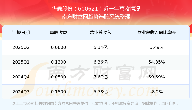 华鑫股份股票近一年营收情况如下表: