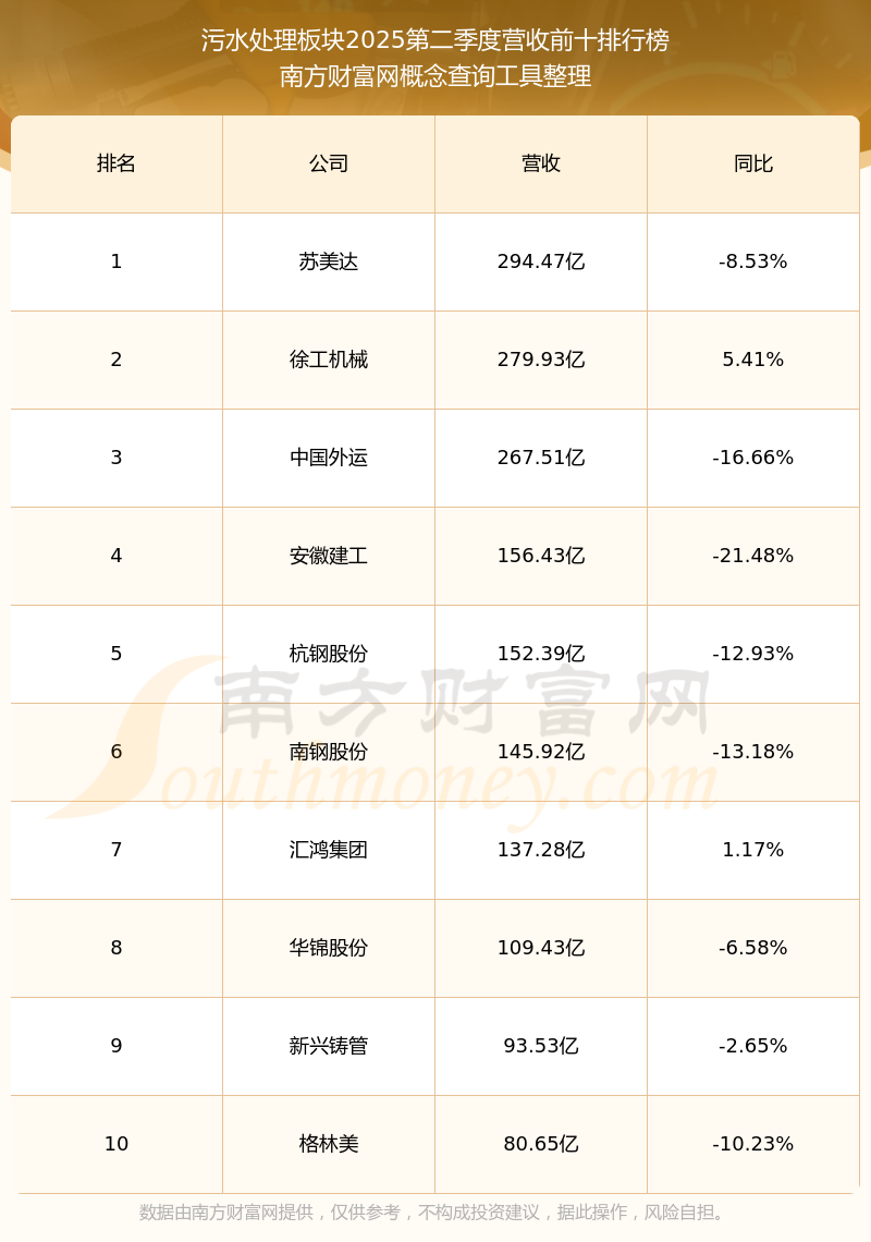 按照概念查询工具统计,该股所属板块为污水处理板块,该板块共有202只股票,洪城环境2025第二季度营收在该板块中排名为第39名,该板块2025第二季度营收排名前十的股票如下表: