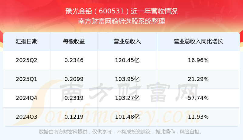 A股上市公司豫光金铅(代码:600531)发布2025年第二季度财报,公司2025年第二季度归属于上市公司股东的净利润为2.56亿元,净利润同比增长1.52%,环比增长11.82%。