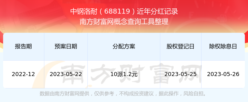中钢洛耐最新一次公布的分红方案:10派1.2元。