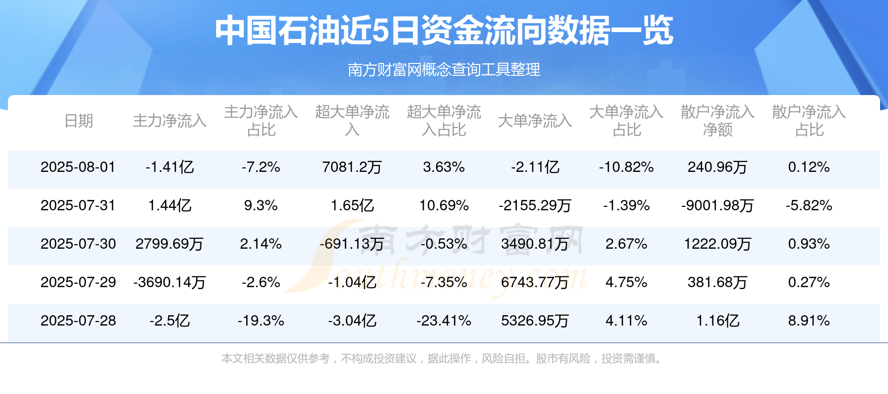 8月1日15点截止,中国石油(股票代码:601857)的股价报8.510元,较上一个交易日跌4.06%。当日换手率为0.14%,成交量达到2.27亿手,成交额总计为19.53亿元。