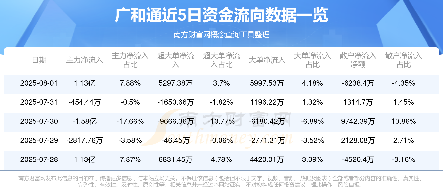 近5日资金流向一览见下表: