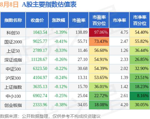 证券之星消息,8月8日A股收盘,上证综指指跌0.12%,报收3635.13点;深圳成指跌0.26%,报收11128.67点;创业板指跌0.38%,报收2333.96点。