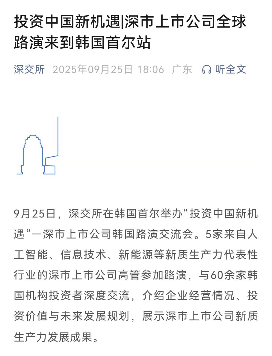 2025年9月25日,深交所在韩国首尔举办的“投资中国新机遇”—深市上市公司韩国路演交流会落幕。
