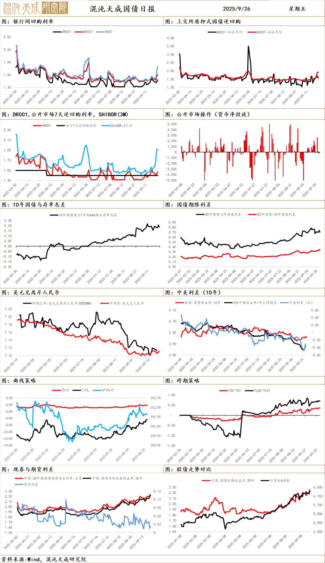 国债早盘延续弱势,跨季资金紧张,期债开盘后加速下跌并创下今年以来新低,现券收益率大幅上行。午后,随着期债触及关键支撑位,空头回补盘涌现,叠加央行14天OMO询价及大行买债稳市的传闻,市场情绪逆转,期货强势反弹。3点后,传闻持续发酵,现券买盘涌入,收益率快速下行收复失地。