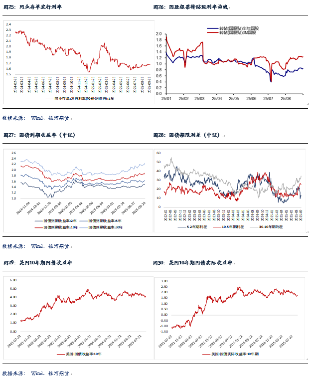午后债市走强可能与收益率来到年内低位后,临近长假部分市场做空力量有所离场相关。而从期货持仓上看,今日TL、TF、TS主力合约均增仓明显,指向“弱现实”下,随着收益率的不断上行叠加盘中期债相较于现券估值略低,市场多空分歧可能有所加大。与此同时,T主力合约持仓反而出现下降,我们猜测或与部分做陡头寸(3T-TL)节前同样止盈有关。
