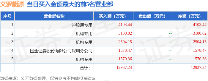 中华财富消息,沪深交易所2025年9月3日公布的交易公开信息显示,艾罗能源(688717)因有价格涨跌幅限制的日收盘价格涨幅达到15%的前五只证券登上龙虎榜。此次是近5个交易日内第1次上榜。
